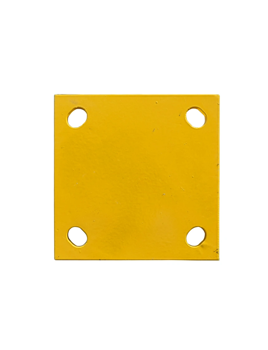 Muvz square base, "Bolt Down" bollards are made of high quality, schedule 40, carbon steel pipe, with welded bases that are then Powder Coated in High Visibility Yellow, and made to take the hits.