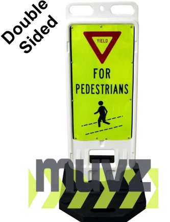 12"x24" Reflective Lime, Yield Symbol "FOR PEDESTRIANS", Vertical Panel Barricade w/28 Lb. Base