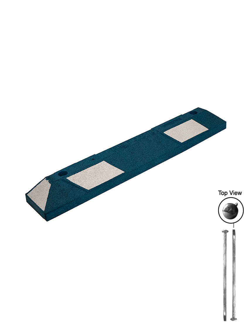 Molded-in colors include black with reflective white or yellow stripes or handicapped blue with white stripes. Two pre-formed mounting holes and all mounting hardware.
