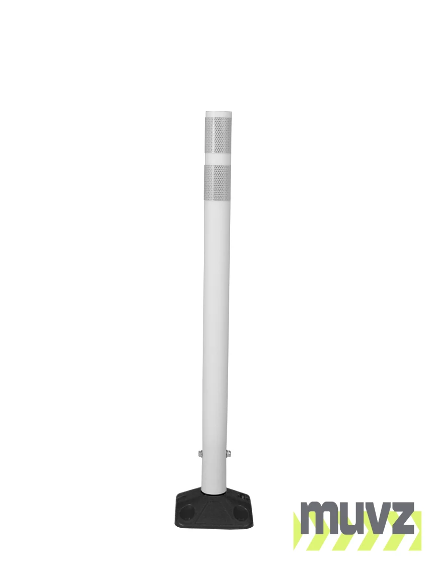 36" White Round Delineator w/ Black Base & 2 White Reflective Collars & Concrete Mounting Hardware