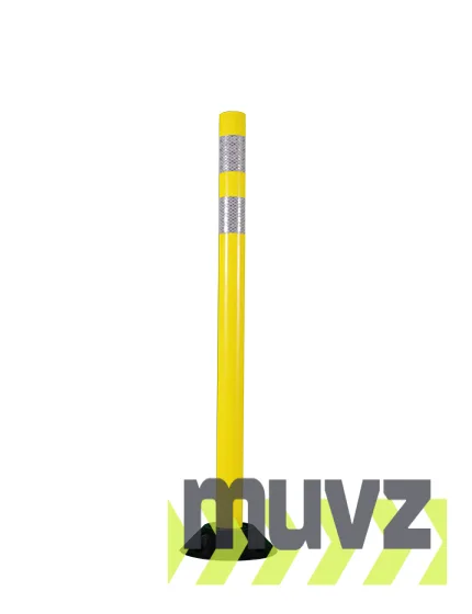 Round Reboundable Delineators are 2" diameter and have two reflective bands. Available in bright orange, white, and yellow - all colors come with white reflective sheeting. These round reboundable road markers are tested to 50 impacts at 35 mph.