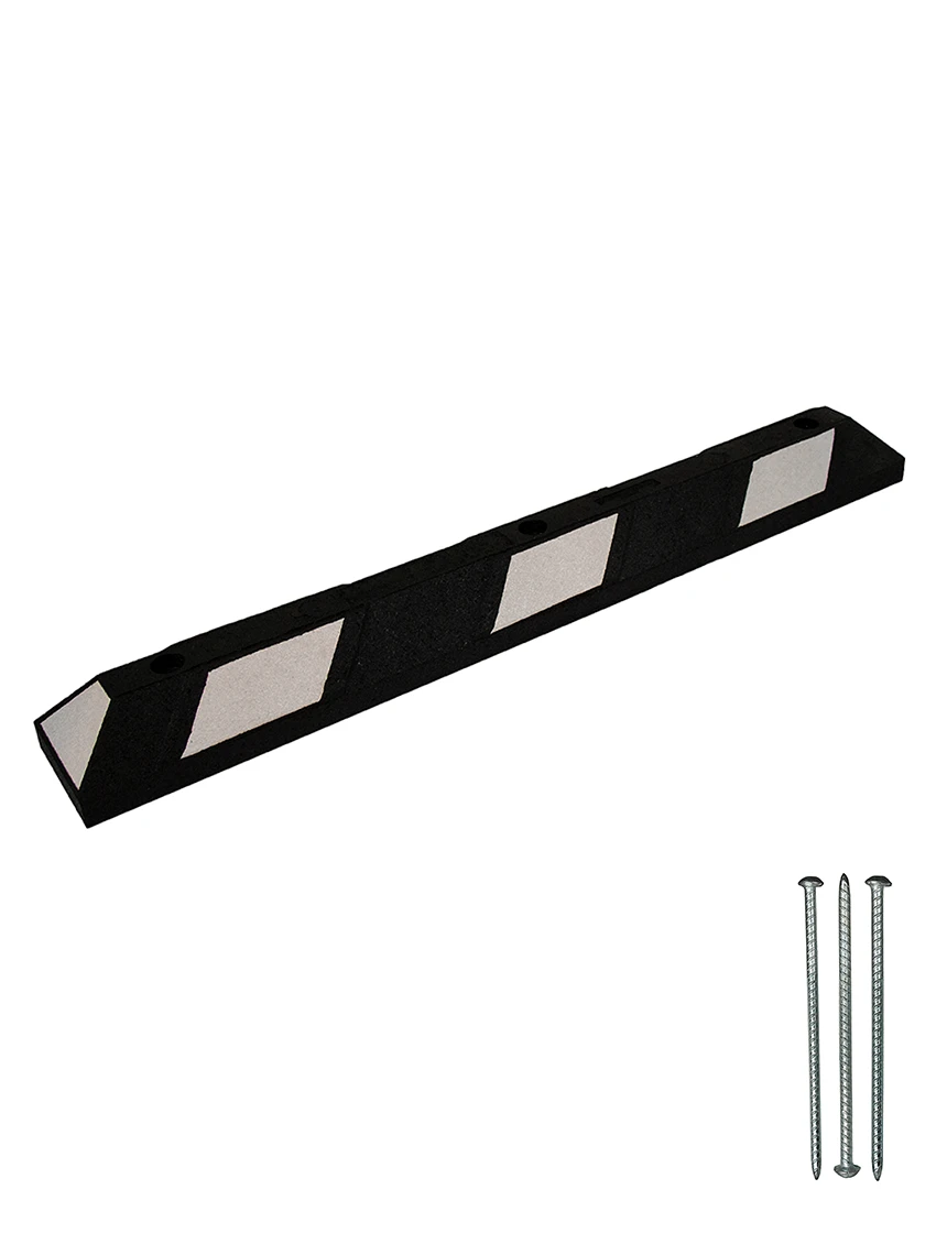 The 4-foot rubber parking block, made from 100 percent post-consumer tires, withstands natural elements and deflects impact. This parking curb will flex slightly to lie flat on uneven surfaces – ideal for church, school, or residential parking lots where the pavement has aged.