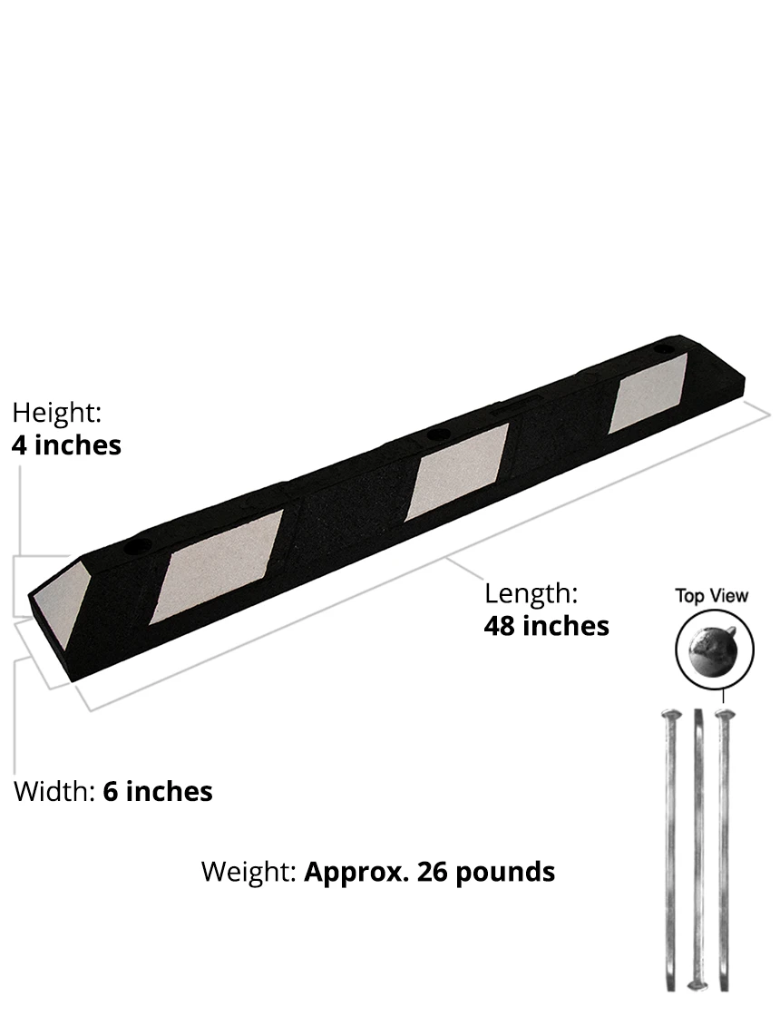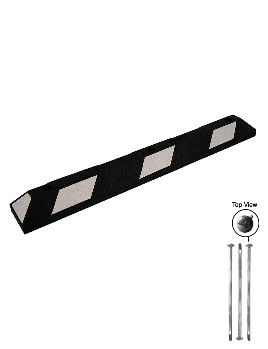 4' Recycled Rubber Parking Block w/White Reflective Tape & 18" Heavy Duty Spikes