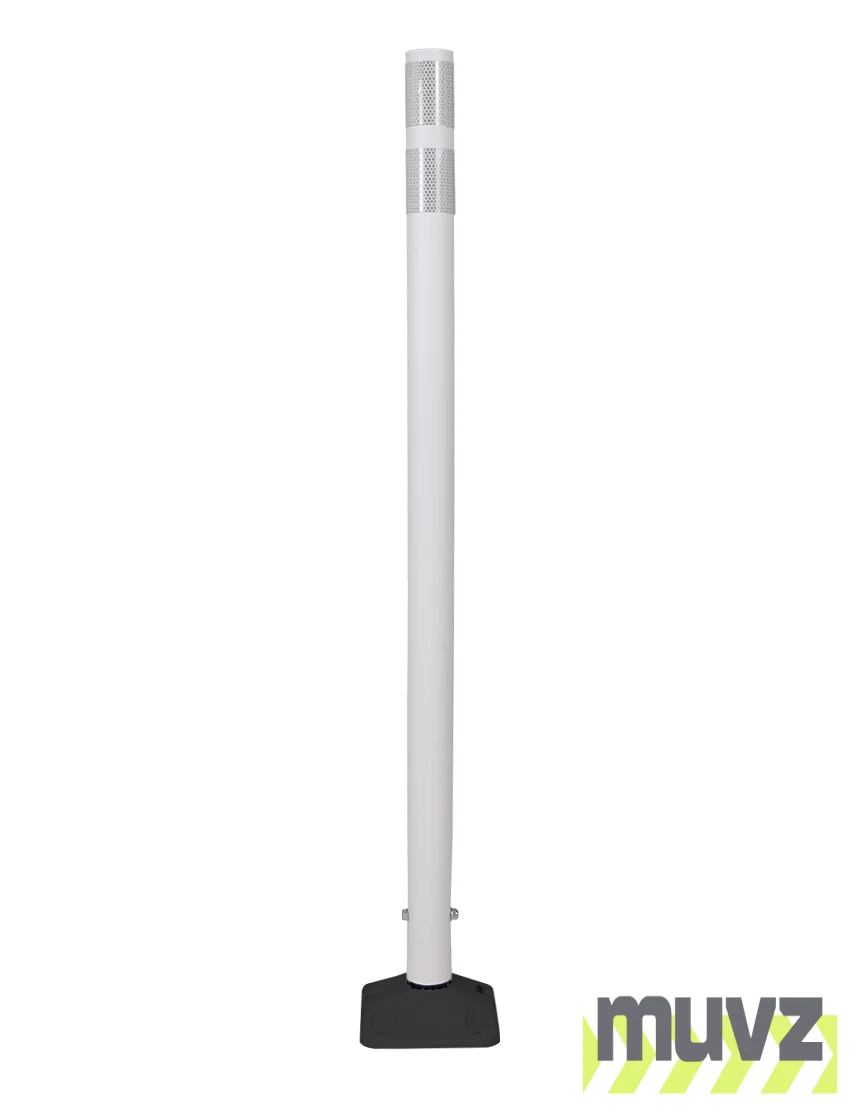 48" White Round Delineator w/ Black Base & 2 White Reflective Collars & Adhesive Mounting