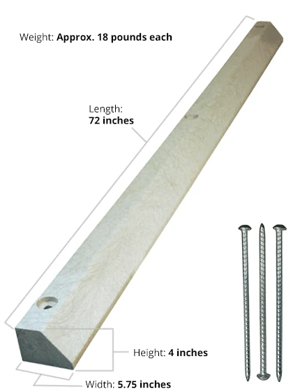 6' Lite Gray, Economy Solid Recycled Plastic Parking Block w/14" Galvanized Rebar Steel Spikes