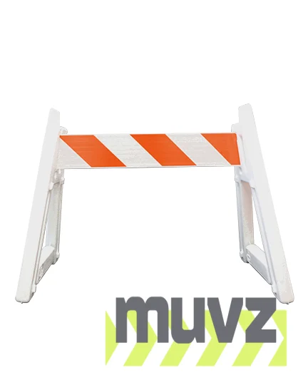 - A 4' Durable, plastic rail to stretch between the two legs covered in either Engineer Grade (EG) or High Intensity (HI) Orange/White Reflective Sheeting on one or both sides