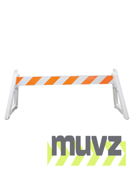 A 8' Durable, plastic rail to stretch between the two legs covered in either Engineer Grade (EG) or High Intensity (HI) Orange/White Reflective Sheeting on one or both sides