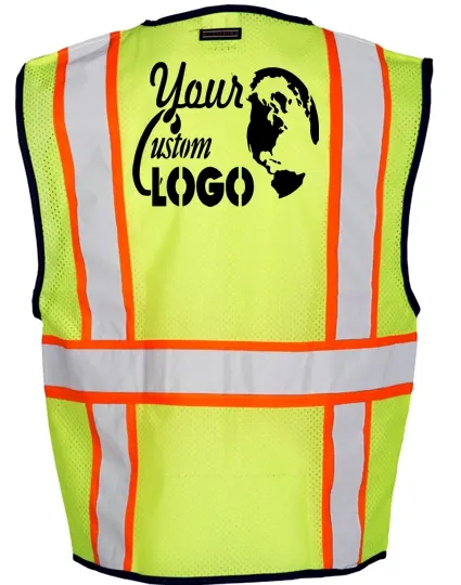 L-XL, Lime, Four (4) Pocket, Contrasting Mesh Class 2 Vest w/ Custom Logo