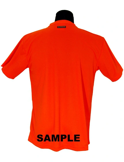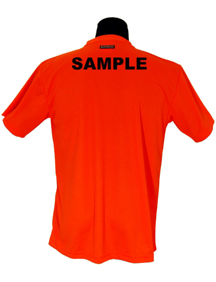 Premium microfiber ANSI Class 1 T-shirt reduces perspiration and helps keep you cool while maximizing your visibility. Great for landscaping, stage crew, campus attendants, construction workers on private roads/driveways/parking lots, employees of well lit indoor factory or warehouses, or anyone exposed to low speed traffic during the day. Comes in bright orange with left side pocket that holds a cell phone. Add personalized graphics/text or company logo for no extra set-up fee.