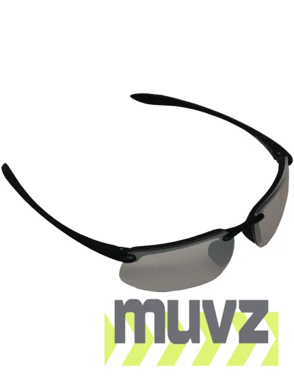 Matte black sports frames with silver safety lenses that keep sun and outdoor elements away from eyes. Can be worn by toll collectors and other traffic personnel. Also useful for outdoor athletes and adventurers. Meets Safety Requirements: ANSI Z87+