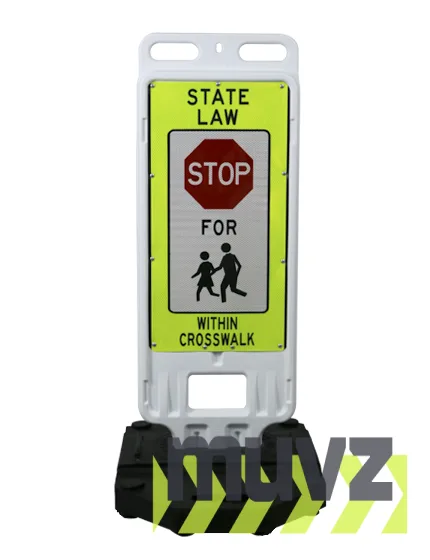 12"x24" Reflective Lime, STOP Symbol "FOR PEDESTRIANS", Vertical Panel Barricade w/28 Lb. Base