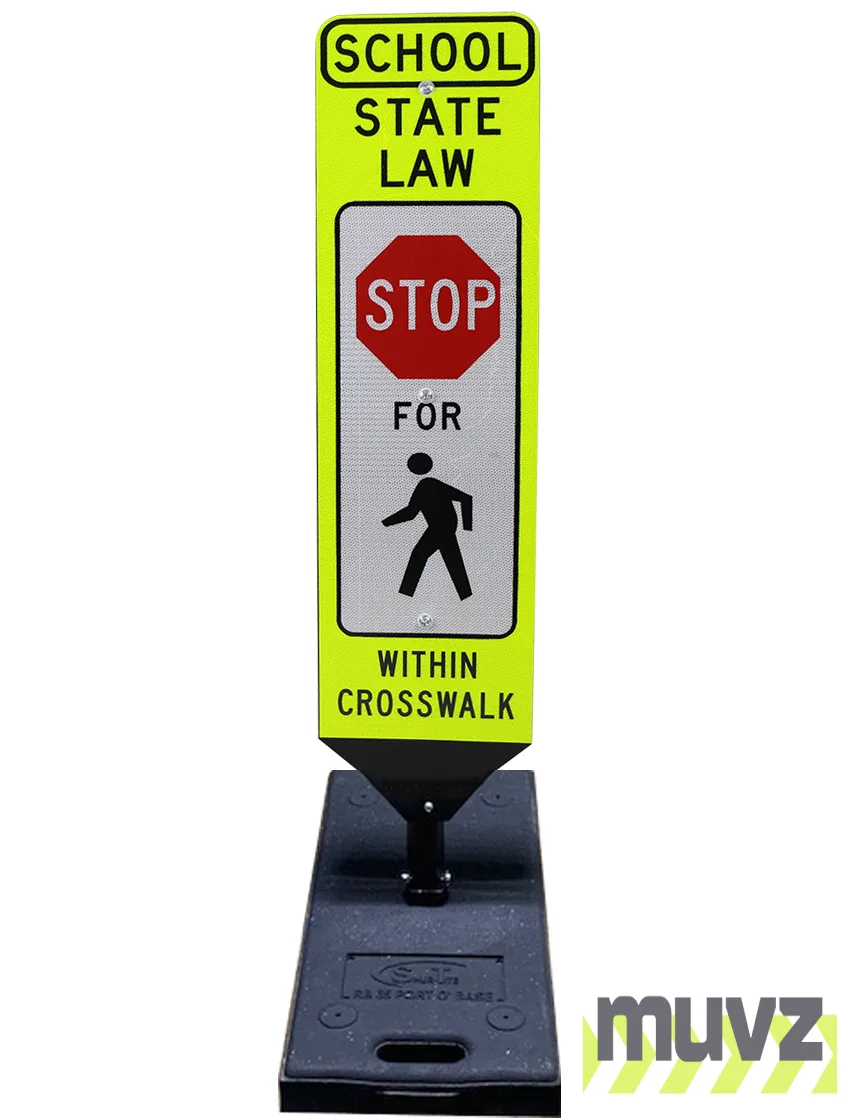 40" x 12" SCHOOL STATE LAW STOP FOR PEDESTRIANS, DOUBLE SIDED, Cross-Walk Barricade w/35 LB. BASE