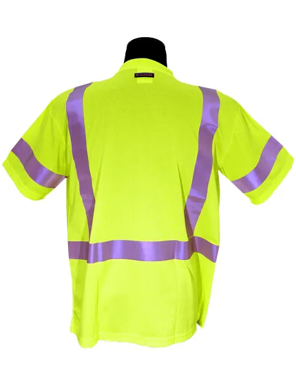Microfiber class 3 T-shirts provides maximum visibility with 2-inch reflective bands on front and back as well as the sleeves. Microfibre helps absorb sweat and reduces risk of heat stroke. Great for summer. Used by surveyors and roadwork crews on highways above 55 mph, cyclists, and motorcyclists. Side pocket holds iphone, walkie talkie, or pen and paper.